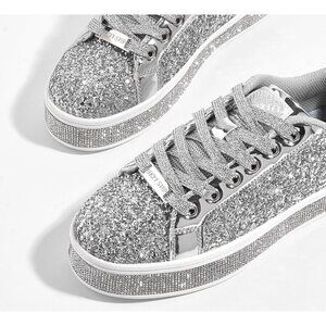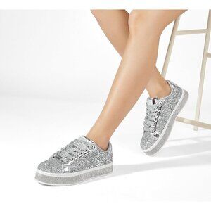 Women's Silver Platform Glitter Sneakers | Sparkly Bling Shiny Dressy