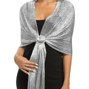 Women's Silver Sparkling Metallic Shawls and Wraps Wedding Party with Buckle