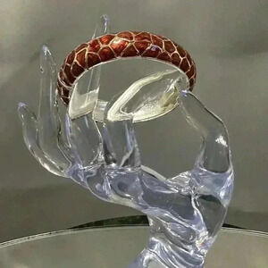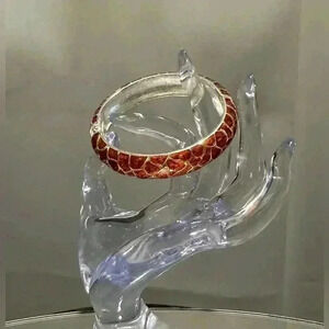 ✅Women’s Silver tone & brown enamel metal hinged bangle bracelet