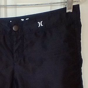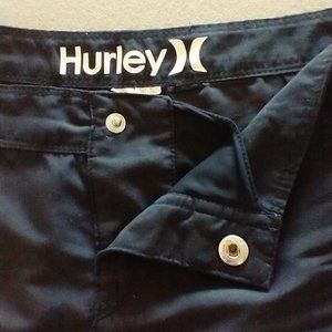 Women's Size 1 Hurley Supersuede Beachrider Board Shorts, black. Previously worn, great condition. Design highlight: snap fly closure (no zippers!). There is also a single velcro closure back pocket, a large embossed white Hurley logo down the right thigh, and white H icon embroidery on front waistband. No stains or rips. I had removed the fabric / size 1 tag when I bought these shorts so I have included a picture of the washing instructions from another pair of Hurley board shorts that I still own - see last pic. Measurements: Length from top of shorts to hem = 15.75". Inseam = 8.5". Flat measurement across waist = 14.95" (or 38.5cm). If you typically wear size XS shorts, these Size 1 shorts should fit great!