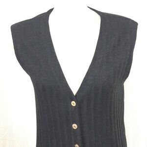 Verse Womens US Size 10 EU Size 40 Vintage Ribbed Longline Vest Black Button Front Pockets Shell Buttons