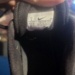 The product is a pair of Nike Revolution 7 Triple Black running shoes in women's size 8. These lace-up sneakers feature a rubber outsole, lightweight design, arch support, and cushioning for comfort and performance. The breathable mesh upper and foam insole provide a comfortable fit, making them suitable for casual wear, activewear, or workwear. With a low-top shoe shaft style and standard shoe width, these sneakers are perfect for various activities such as gym training, walking, or running. The modern design of the Nike Revolution 7 shoes combines functionality with style, making them a versatile choice for any season.