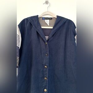 Women's Size L Button Down Blouse Gold Metallic Coastal Nautical Sailor Chic
