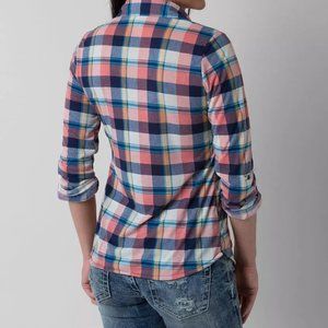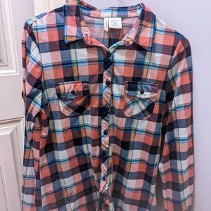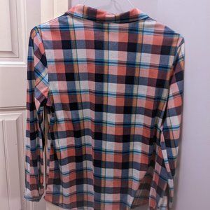 Women's Size L Passport Pink Blue Flannel Button Down Plaid Shirt