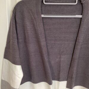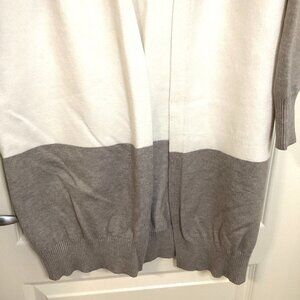 Women's Size M Extra Long Open Front Cardigan Gray White ColorBlock Country Girl