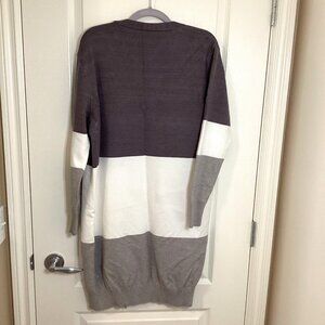 Women's Size M Extra Long Open Front Knit Cardigan Gray White Color Block Country Girl