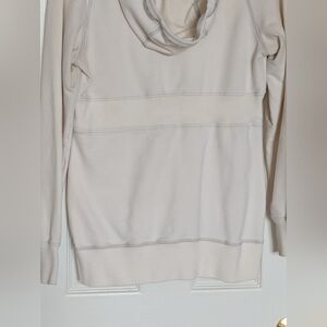 Women's (Size M) Long Off-White Zip-Up Hoodie/Jacket With Grey Trim & Drawstring