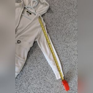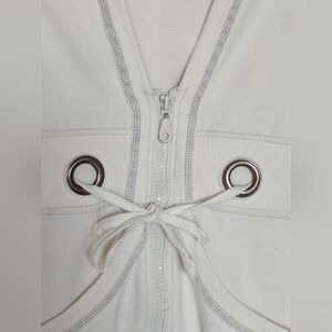 Women's (Size M) Long Off-White Zip-Up Hoodie/Jacket With Grey Trim & Drawstring