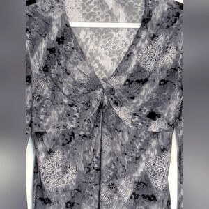 Women's (Size S/M) V-Neck Top With Faux Gathering Feature & Wide Sleeves