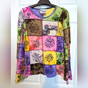 Women's (Size Small) Colorful Boho Hippie Patchwork Long-sleeve Top