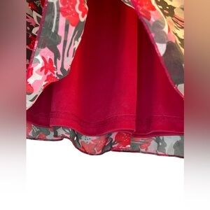 Solid red centre with sheer floral chiffon overlay in red, pink, and black. Black 2” elastic waistband. Perfect for date nights or festivals! Flowy, feminine and eye-catching. Bundle & save!
