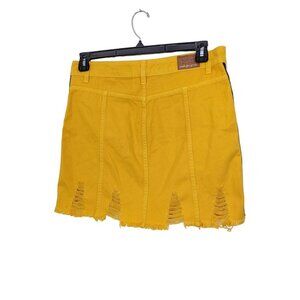 Womens Skirt US 16 Yellow Denim Distressed Short Mini Racing Stripes Brazil Made