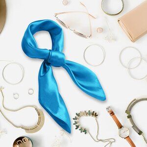 Women's Sky Blue Silk Feeling Scarf 23.6'' Square Satin Scarf Neck Head Bandana