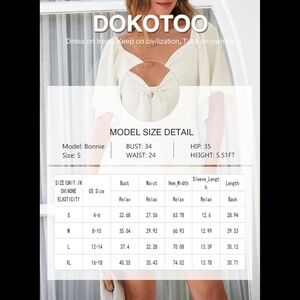 Brand new without tags Dokotoo women’s size M (size chart in photos) sky blue V neck flutter bell sleeve elegant bow tie mini dress. Features elegant ruffle bell sleeve, V neck, elegant bow tie front, has stretchy back, side zipper and mini length. Made with soft and lightweight material, this dress is perfect for those hot and humid summer days. Does have lining. 100% Polyester