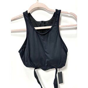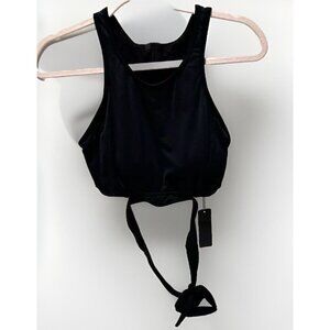 Women's Small Black Back Zipper Bathing Suit Swimwear Top with Wrap Around Strap