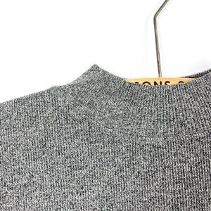 This is a cozy grey knit mock neck sweater, made from thick, high-quality material. Though the brand is unknown, the craftsmanship and warmth make it a great basic piece for layering or wearing on its own. Perfect for any casual or cozy look.