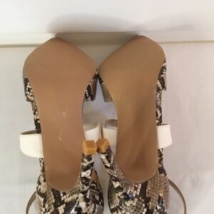 Brand new without tags women’s size 9 neutral snakeskin pattern heels. Features pointed toe, T-strap front, zipper back closure and padded insole. 3.5” heel.
