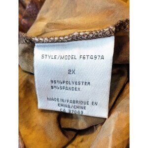 This women's plus size top is a perfect addition to any wardrobe. With a stylish snakeskin print and grommet accent, it's perfect for any occasion, whether it be casual, a party, or even travel. The v-neckline and 3/4 sleeves give it a classic look, while the lightweight and stretchy material make it comfortable to wear in any season. The brown top features a pullover closure and is made of a polyester and spandex blend. Perfect for those who love a jungle or safari aesthetic, it also works for those who love reptile and wild animal themes. The Claire France brand is a plus size fit for the size 2X top, which is machine washable for easy care.
