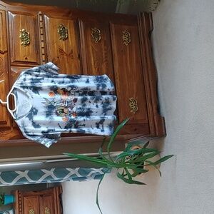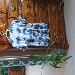 - tie dye short sleeved shirt, cap sleeves with vertical bands