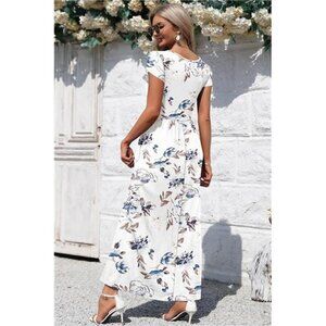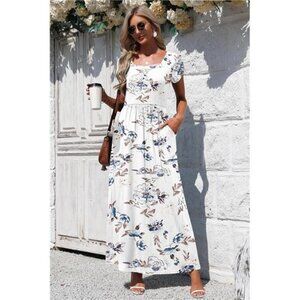Women's Square Neck Maxi Dresses Petal Short Sleeve Casual Long Dress Pokets