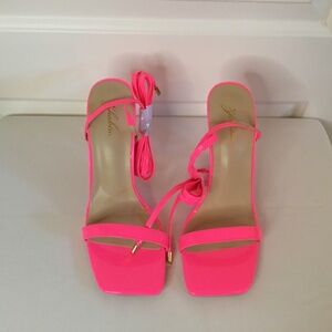 Brand new without box Zhabtuc women’s size 10 hot pink square toe lace up strappy stiletto heels. Trendy open square toe high heel sandals with crisscross lace-up straps for support. Slip-resistant rubber outsole for steady and comfortable walking. 4.3” heel.