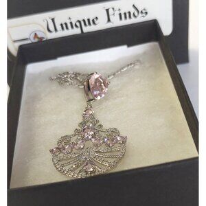 Women's Sterling Silver 16" Neckalce & Pendant Kunzite & CZ NEW