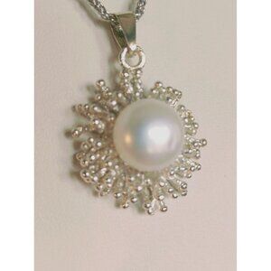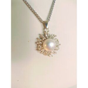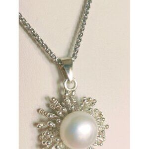 Italian Women's Sterling Silver Jewellery Set Pearl Earrings, Pendant, Necklace 16" (NEW)
