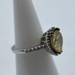 Sterling Gemstone Silver Plated Cubic Zirconia Heart Shape Yellow Stone Ring