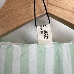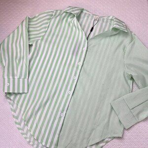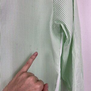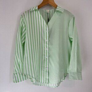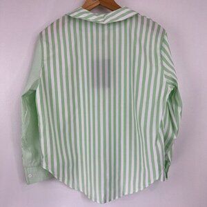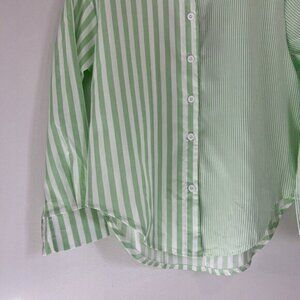 Women's Striped Button Down Shirt Size M Cropped Louse Fit Blouse Green White