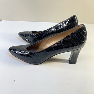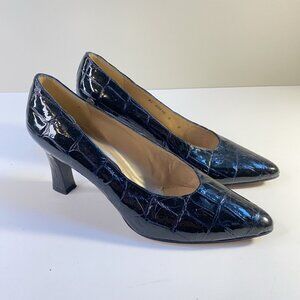 Stuart Weitzman Black Croc-Embossed Patent Leather Pumps Size 8