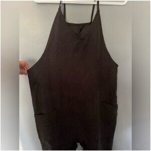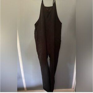 Women’s Suede-Like Black Jumpsuit Size Medium – Fashionable One-Piece VG