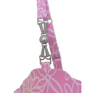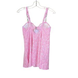 Womens Swim Dress Medium Pink Textured Floral One Piece Swimsuit Bejeweled Strap