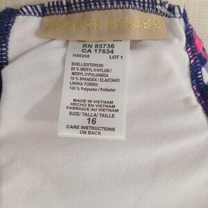Make a splash with the Beach House Women's Swimsuit Top in a playful Gingham Blue and Rose pattern. Designed for plus-size comfort, this size 16 / XL tankini top features a flattering twisted bra accent that adds a touch of sophistication to your beach day or poolside relaxation. The lightweight and breathable fabric blend of spandex and Meryl nylon ensures a comfortable fit, while the adjustable spaghetti straps provide personalized support. This swim top is not only stylish with its vibrant theme and watercolor-inspired design but also practical with its quick-dry and removable pads for added convenience. Proudly crafted in Vietnam, this tankini top is machine washable for easy care, making it a staple for your swimwear collection.