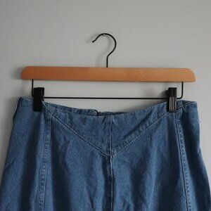 Women's Sz M Blue Denim Pull On A-Line Zipper Maxi Skirt