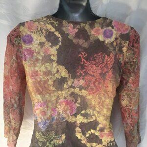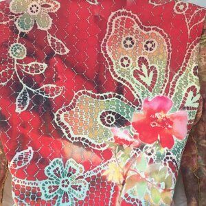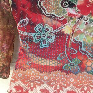Women's Size S Shirt Top 1990s Lace Crop Reversible Floral Black Red Bohemian