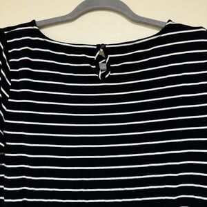 Women’s Talbots Brand Causal Black and White Striped Long Sleeve Shirt. Size Medium. Rayon and spandex blend. In great condition no issues or flaws. Great for workwear. Keyhole in the back.