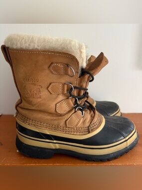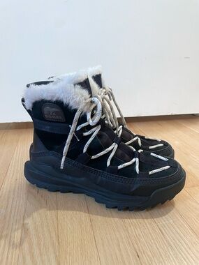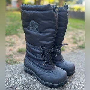 Womens Tall waterproof sorel boots with fur Black and Tan size 6