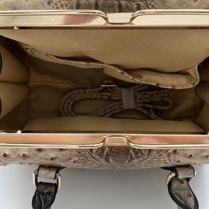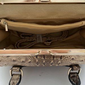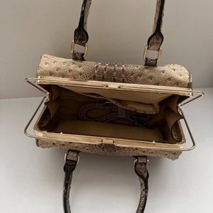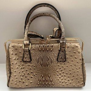 Women's Tan Alligator Skin Leather Top Handle Handbag Purse with Removable Strap