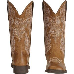 Women's Tan Square Toe Calf High Fashion Western Embroidered Cowgirl Boots