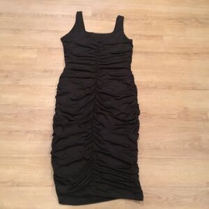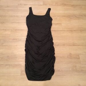 Brand new without tags women’s size XL black tank top bodycon ruched midi party dress. Features a square neck, tank style that is sleeveless, knee length and ruched both side that you can adjust the length. 90% Polyester and 10% Spandex. Has stretch.