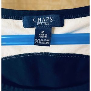 This is a gently used blue and white tank top made by Chaps.