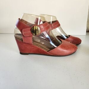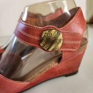 Womens Taos Penelopeep Red Leather Wedge Heeled Peep Toe Sandals Size 8 EU 38