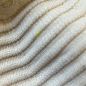 There is a tiny mark - looks like yellow highlighter - see pictures. I didn’t notice it until I was photographing for this listing.