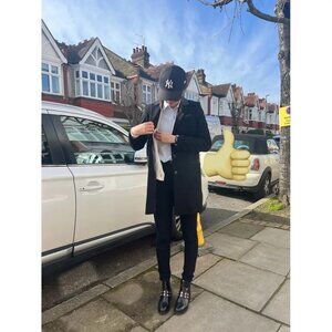 Women's The Kooples Black Wool Cashmere Blend Structured Coat Size 36