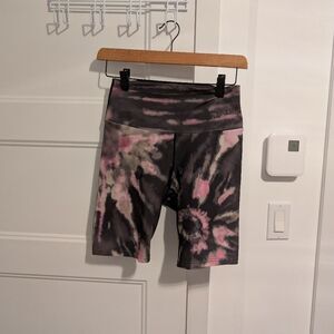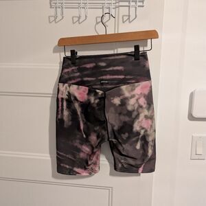Elevate your workout with these stylish tie-dye high-waisted shorts. Featuring a blend of black and pink, these shorts offer both comfort and fashion for your active lifestyle.