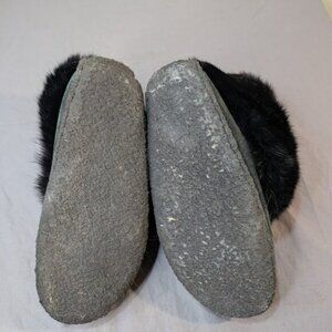 These women's short Tsar mukluks winter boots are the perfect combination of luxury and style. They are the best 'every day' winter boot that you can quickly slide on and off since they reach slightly above your ankle and are approximately 8" tall. These ladies winter mukluk boots are Canadian handmade from real suede leather in a chic Black colour and have matching real rabbit fur around the entire boot shaft which is soft and fuzzy. They have a durable black outdoor crepe/rubber sole and a hand-beaded design on the vamp. These women’s Native American style short mukluks are cozy as they have a warm fleece lining throughout the footbed and shaft of the boot.