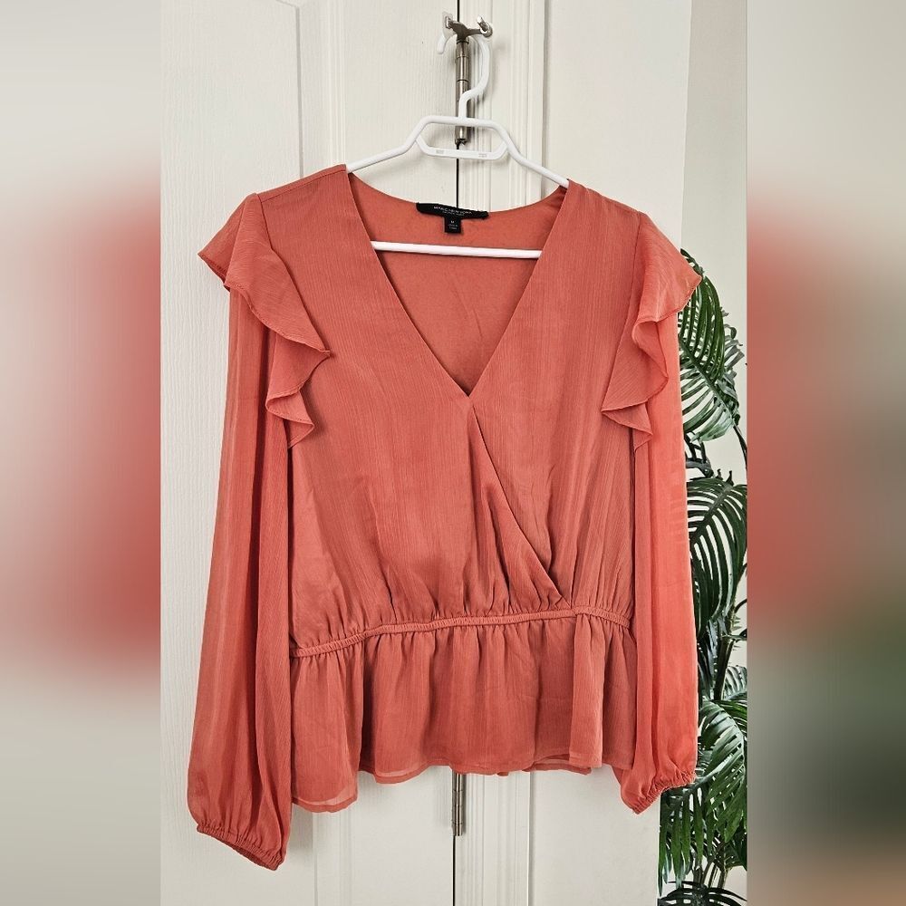Elevate your style with this elegant V-neck top. Featuring delicate ruffle details and a flattering fit, it's perfect for any occasion.