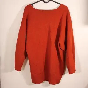 Stay cozy and stylish with this rust-colored V-neck sweater. Perfect for any casual outing.