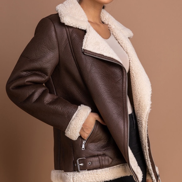 Size Small women's aviator jacket. Made of vegan leather & vegan fur. Warm! Good for late fall/early winter! Selling because it no longer fits. It was one of my favourites.