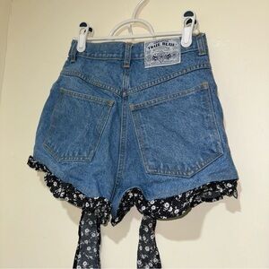 Women’s Vintage 90’s High Waisted Daisy Duke Denim Shorts Floral Detail Size 5/6. True Blue Brand. 100% rayon. In great condition no issues or flaws. High waisted denim style. Very country girl chic. Amazing floral detail. Rare and hard to find. Measurements included in photos.